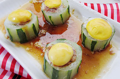 釀苦瓜,親們應(yīng)該做得多。釀黃瓜,親們試過了沒有。
